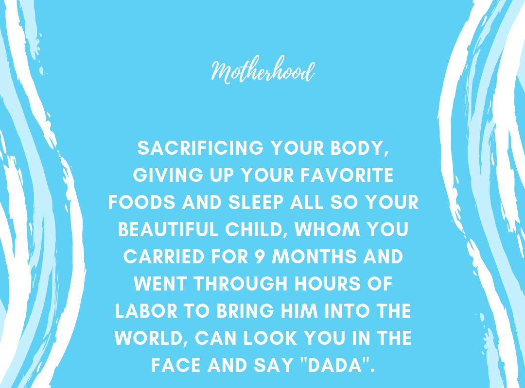 As you go through the first few months of sleepless nights and sore boobs and self-doubt, and questioning your sanity, you will continue to look at your beautiful baby and tell yourself it is all worth it. The good, the bad, and the ugly of motherhood are all worth it to see your baby smile; watch him recognize you for the first time, lift his head and reach out for you. You get filled with all the feels and know that it is all worth it until the day he looks you in the eyes, smiles, and calls you “Dada.”